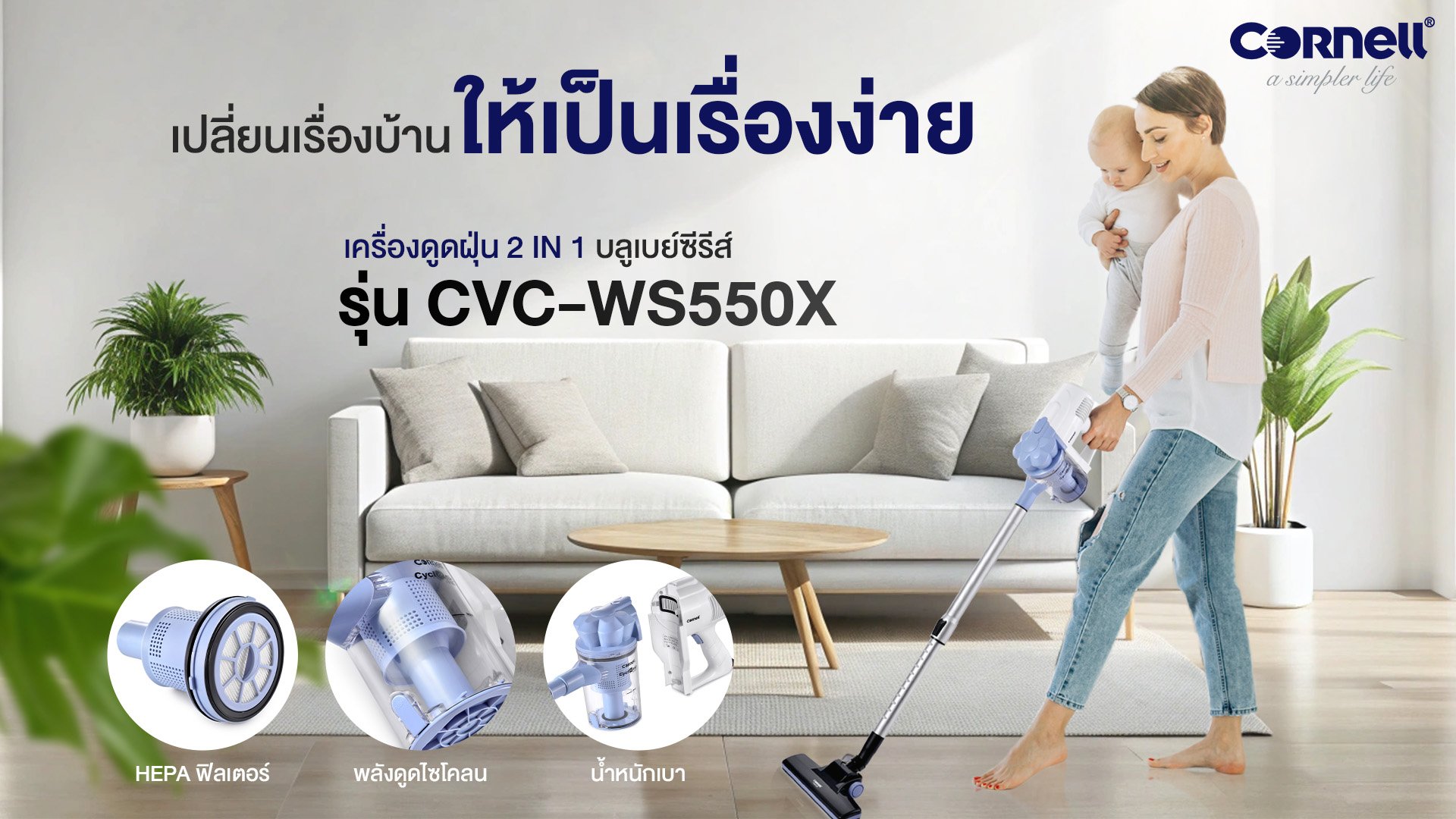 เครื่องดูดฝุ่น Cornell Blue Bae Series รุ่น CVC-WS550X โดดเด่นด้วยคุณสมบัติที่ตอบโจทย์การใช้งานในบ้านอย่างครบครัน มาดูกันว่าอะไรทำให้เครื่องดูดฝุ่นรุ่นนี้มีจุดเด่นอะไร ที่หากในราคาเดียวกันนี้จะมีแตกต่างจากรุ่นอื่นๆ ในท้องตลาด